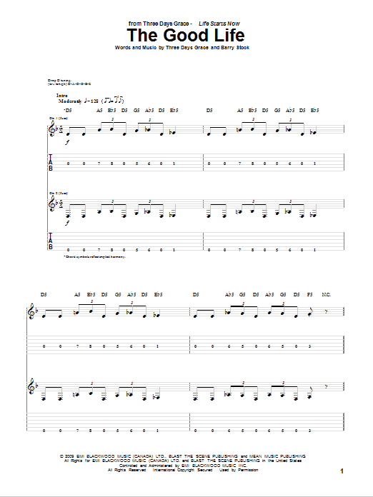 Download or print Three Days Grace The Good Life sheet music, chords and digital score arranged for Guitar Tab (Single Guitar). This Christian score includes 5 page(s).