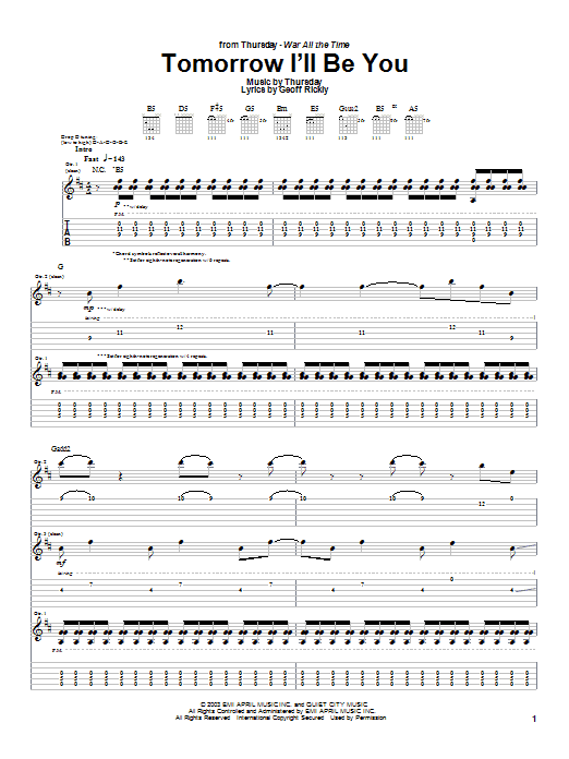Download or print Thursday Tomorrow I'll Be You sheet music, chords and digital score arranged for Guitar Tab. This Rock score includes 12 page(s).