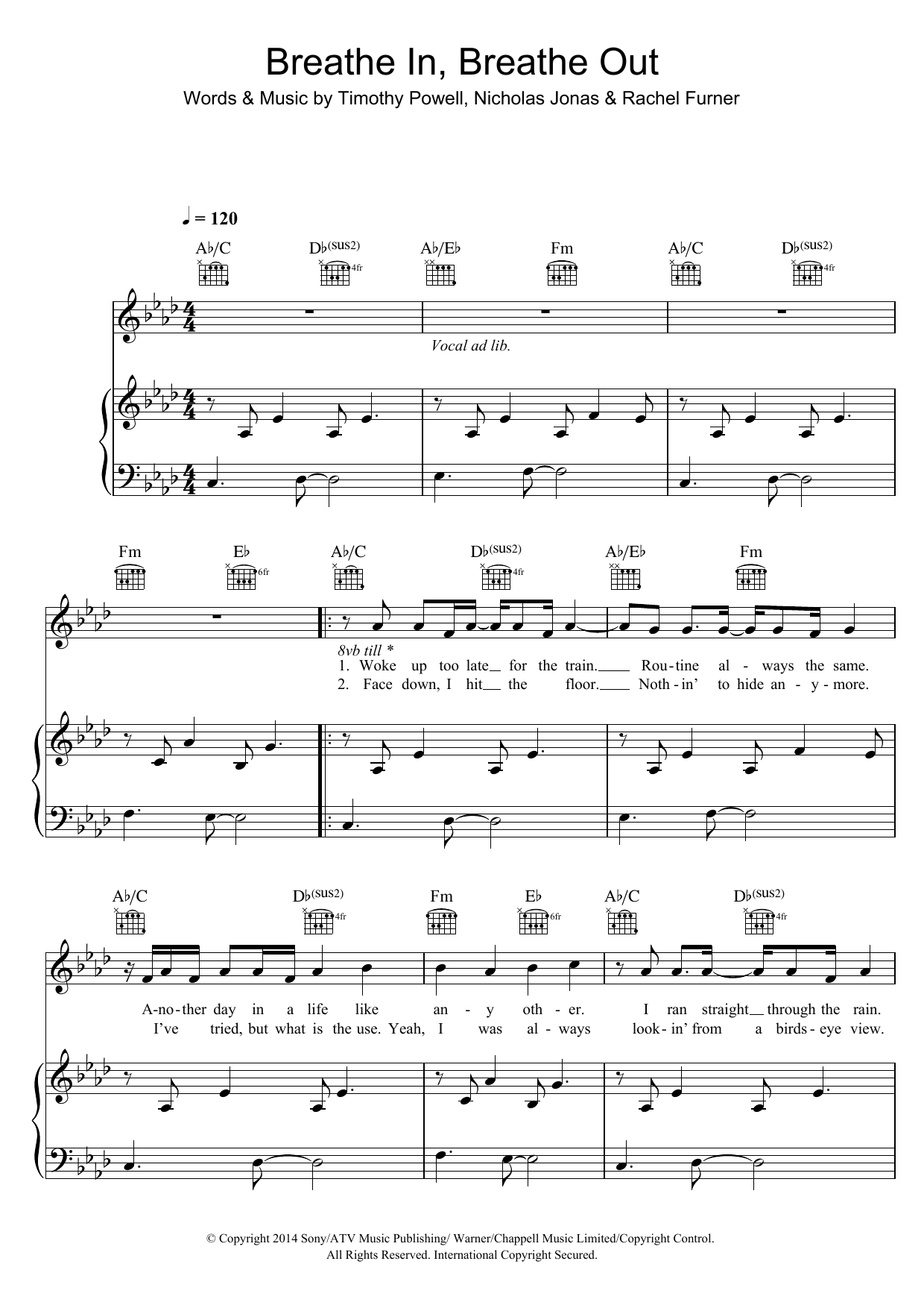 Download or print Tich Breathe In, Breathe Out sheet music, chords and digital score arranged for Piano, Vocal & Guitar Chords. This Pop score includes 5 page(s).