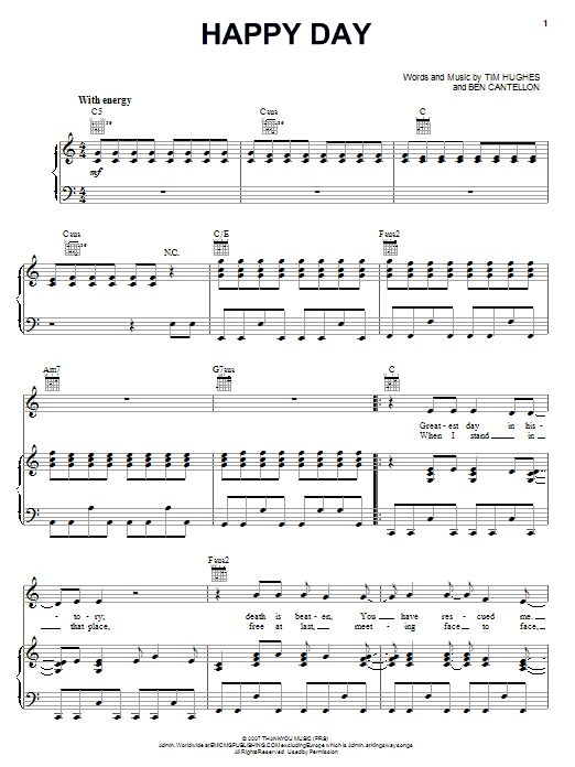 Download or print Tim Hughes Happy Day sheet music, chords and digital score arranged for Easy Piano. This Christian score includes 5 page(s).