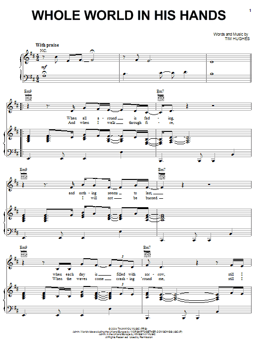 Download or print Tim Hughes Whole World In His Hands sheet music, chords and digital score arranged for Piano, Vocal & Guitar Chords (Right-Hand Melody). This Christian score includes 3 page(s).