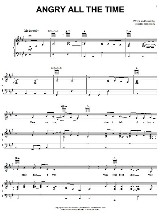 Download or print Tim McGraw Angry All The Time sheet music, chords and digital score arranged for Piano, Vocal & Guitar Chords (Right-Hand Melody). This Country score includes 9 page(s).