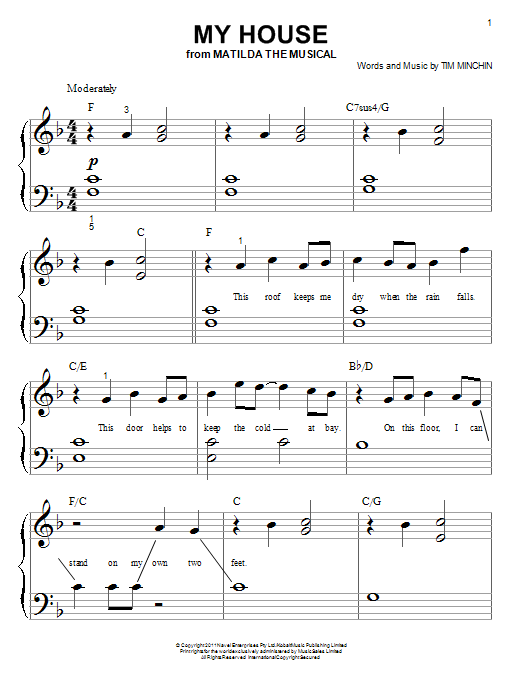 Download or print Tim Minchin My House (from 'Matilda The Musical') sheet music, chords and digital score arranged for Big Note Piano. This Broadway score includes 8 page(s).