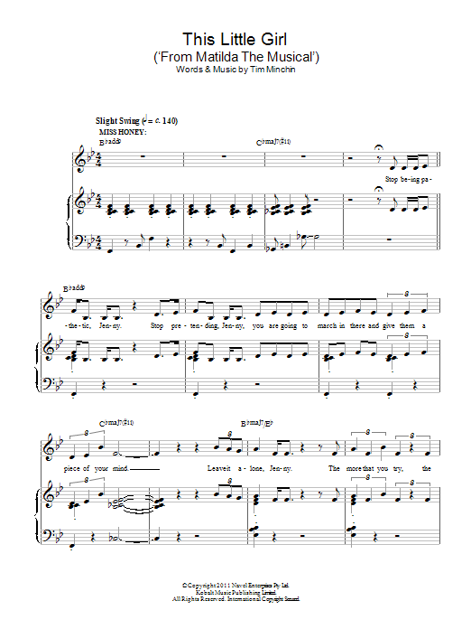 Download or print Tim Minchin This Little Girl (from Matilda The Musical) sheet music, chords and digital score arranged for Piano & Vocal. This Musical/Show score includes 3 page(s).
