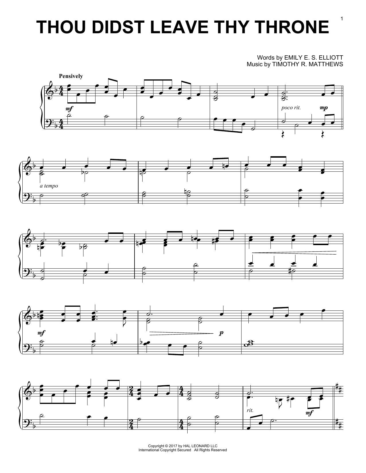 Download or print Timothy R. Matthews Thou Didst Leave Thy Throne sheet music, chords and digital score arranged for Piano Solo. This Christmas score includes 2 page(s).