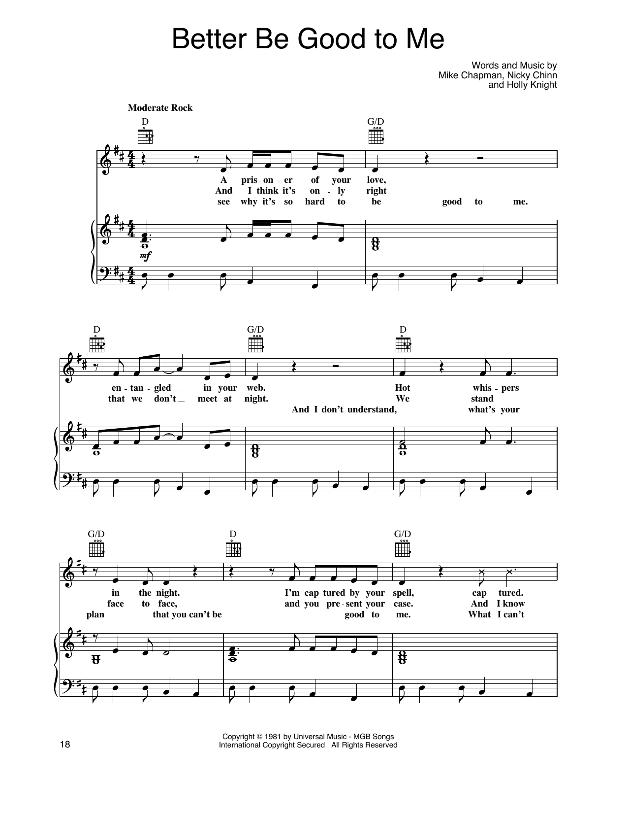 Download or print Tina Turner Better Be Good To Me sheet music, chords and digital score arranged for Lead Sheet / Fake Book. This Pop score includes 1 page(s).