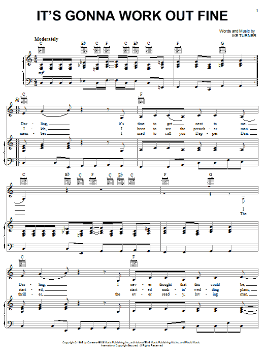 Download or print Ike & Tina Turner It's Gonna Work Out Fine sheet music, chords and digital score arranged for Piano, Vocal & Guitar Chords (Right-Hand Melody). This Pop score includes 4 page(s).