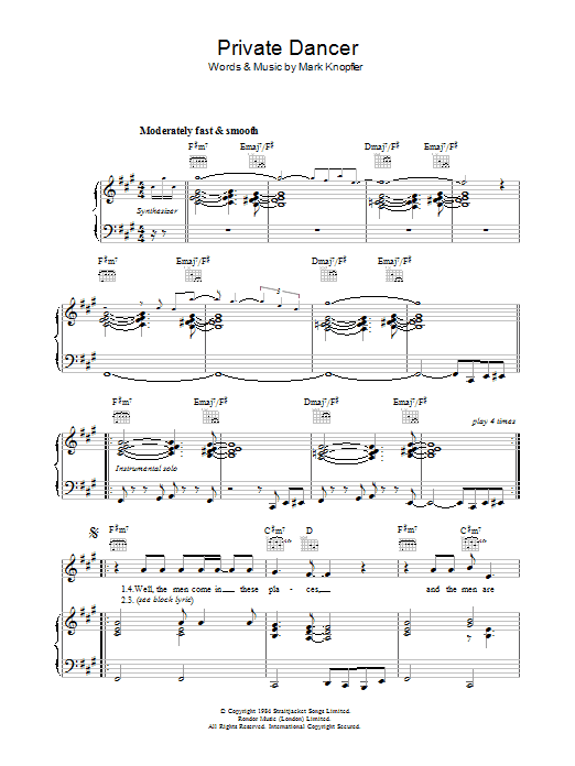 Download or print Tina Turner Private Dancer sheet music, chords and digital score arranged for Piano, Vocal & Guitar Chords (Right-Hand Melody). This Pop score includes 6 page(s).