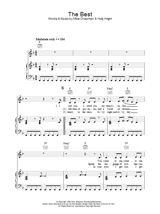 Download or print Tina Turner (Simply) The Best sheet music, chords and digital score arranged for Piano, Vocal & Guitar Chords (Right-Hand Melody). This Pop score includes 5 page(s).
