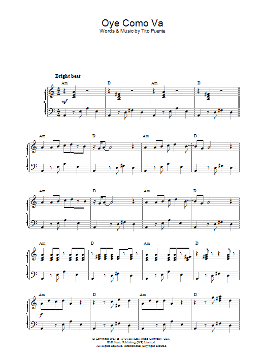 Download or print Tito Puente Oye Como Va sheet music, chords and digital score arranged for Tenor Sax Solo. This Latin score includes 3 page(s).