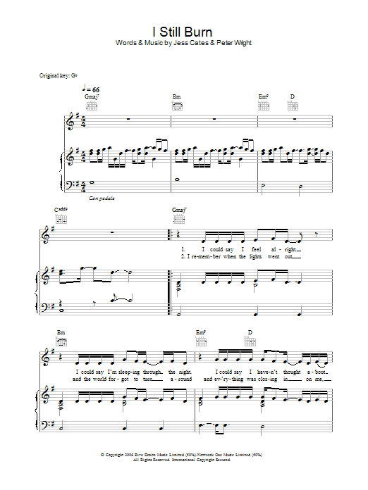 Download or print Tobias Regner I Still Burn sheet music, chords and digital score arranged for Piano, Vocal & Guitar Chords. This Pop score includes 5 page(s).