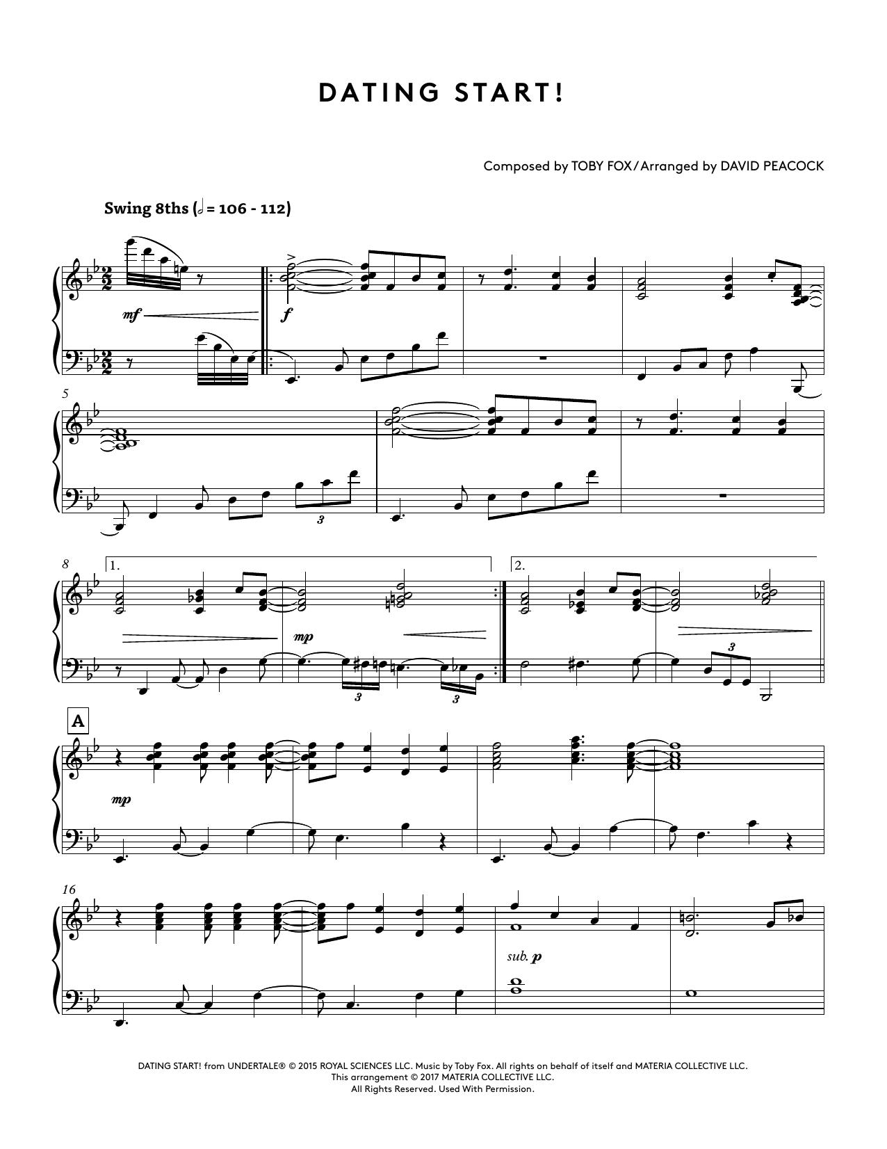 Quick facts Dating Start! (from Undertale Piano Collections 2) (arr. David Peacock) about digital sheet music