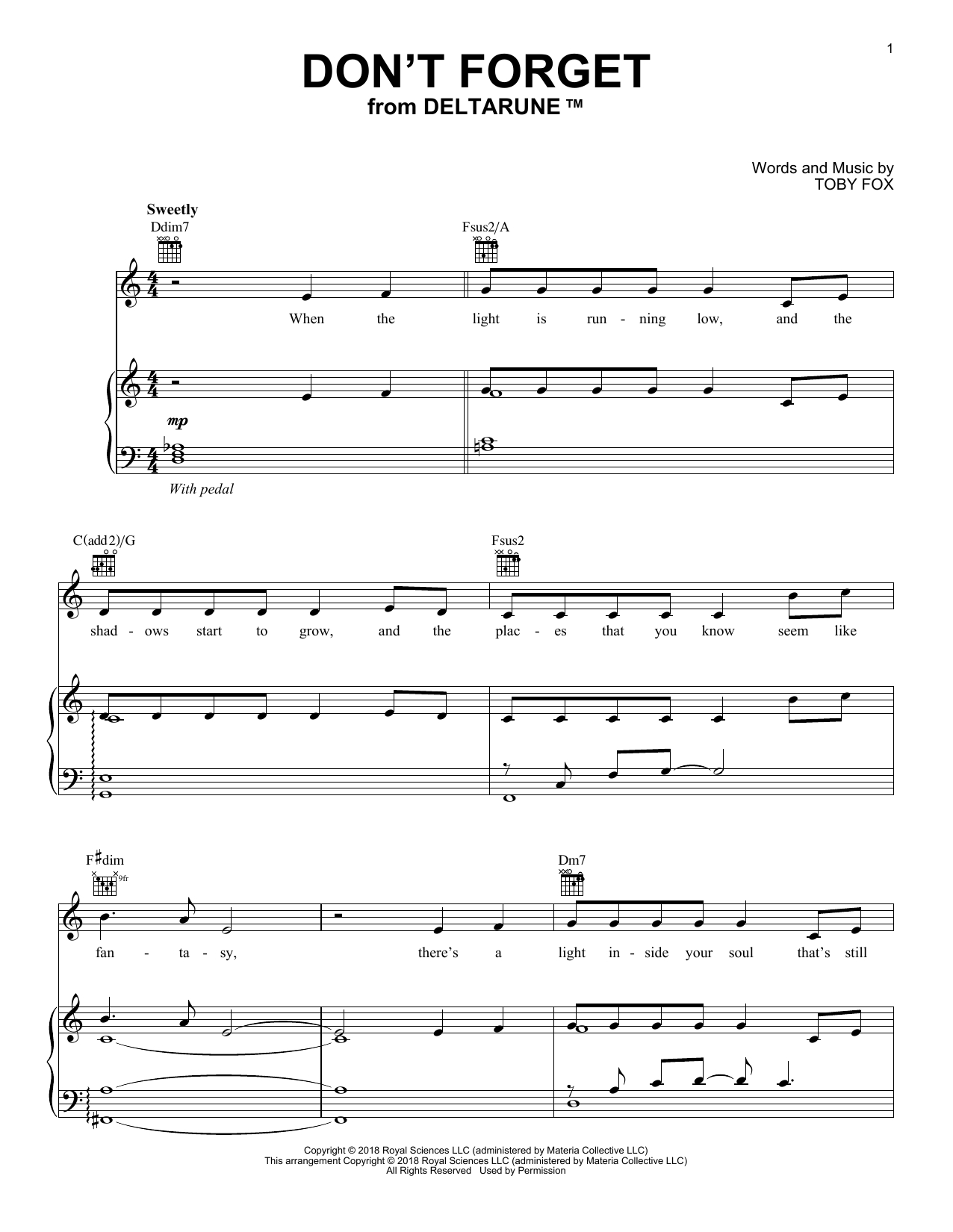 Download or print Toby Fox Don't Forget (from Deltarune) sheet music, chords and digital score arranged for Easy Guitar Tab. This Video Game score includes 1 page(s).