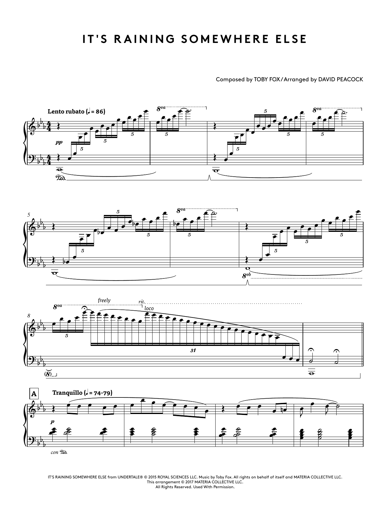 Quick facts It's Raining Somewhere Else (from Undertale Piano Collections) (arr. David Peacock) about digital sheet music