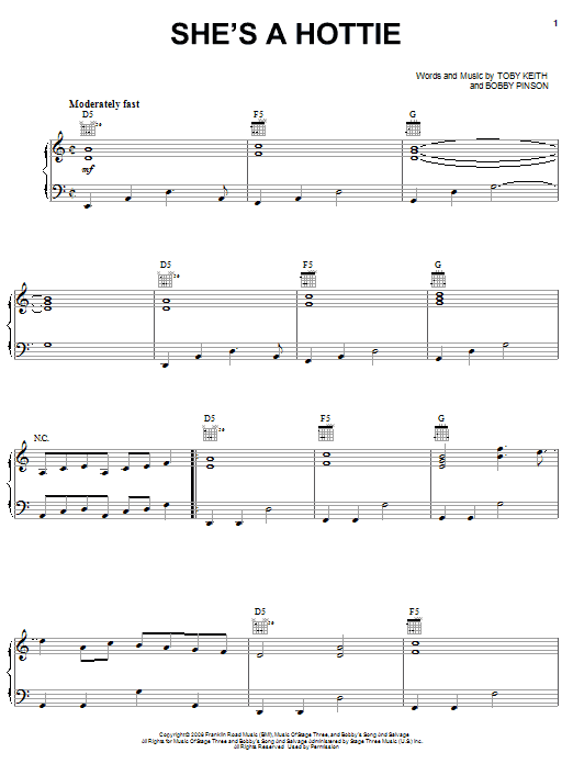 Download or print Toby Keith She's A Hottie sheet music, chords and digital score arranged for Guitar Tab. This Country score includes 13 page(s).