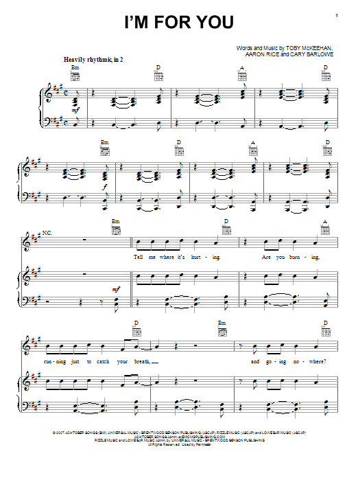 Download or print tobyMac I'm For You sheet music, chords and digital score arranged for Piano, Vocal & Guitar Chords (Right-Hand Melody). This Christian score includes 10 page(s).