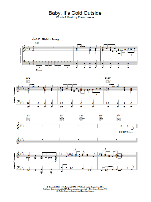 Download or print Tom Jones Baby, It's Cold Outside sheet music, chords and digital score arranged for Piano & Vocal. This Christmas score includes 5 page(s).