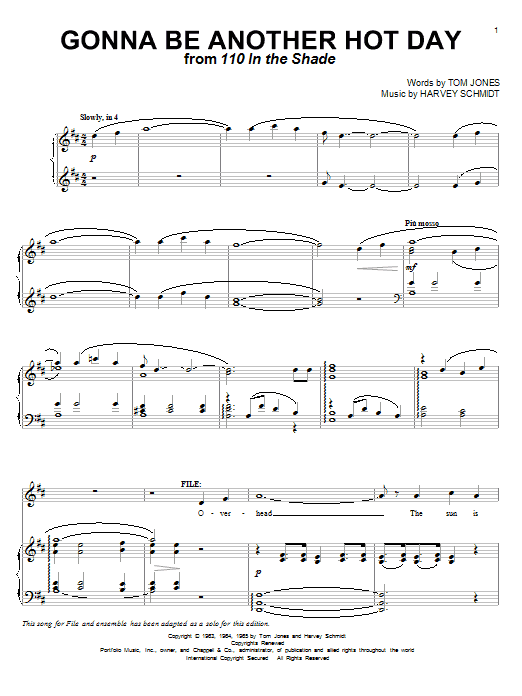 Download or print Tom Jones Gonna Be Another Hot Day sheet music, chords and digital score arranged for Piano & Vocal. This Musical/Show score includes 6 page(s).