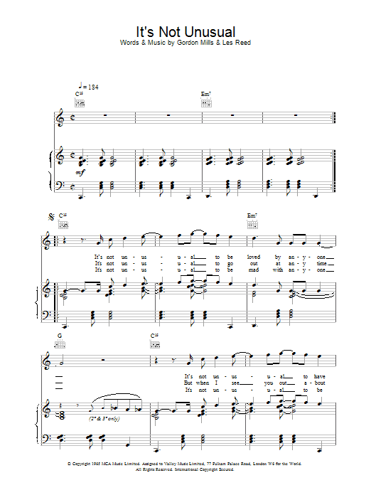 Download or print Tom Jones It's Not Unusual sheet music, chords and digital score arranged for Lead Sheet / Fake Book. This Oldies score includes 1 page(s).