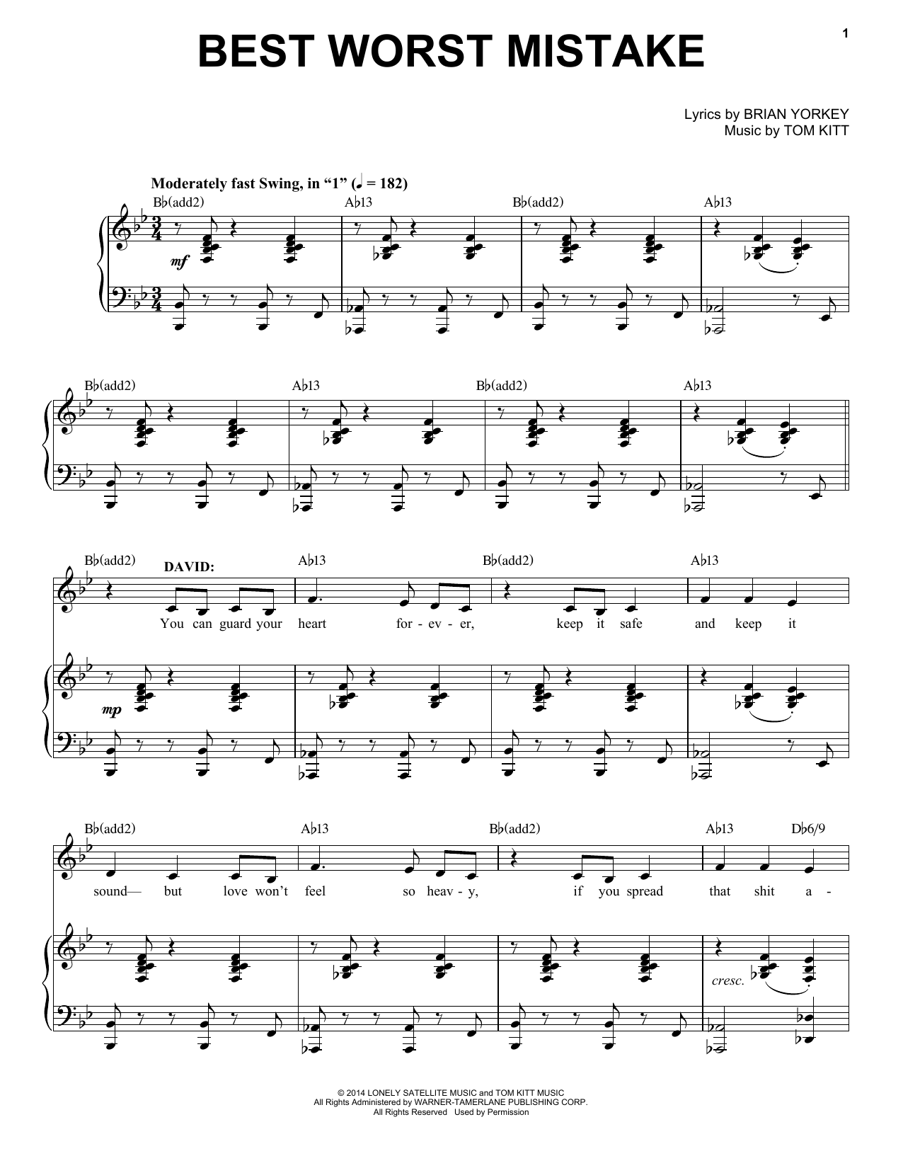 Download or print Jason Tam & Anthony Rapp Best Worst Mistake (from If/Then: A New Musical) sheet music, chords and digital score arranged for Piano & Vocal. This Broadway score includes 12 page(s).