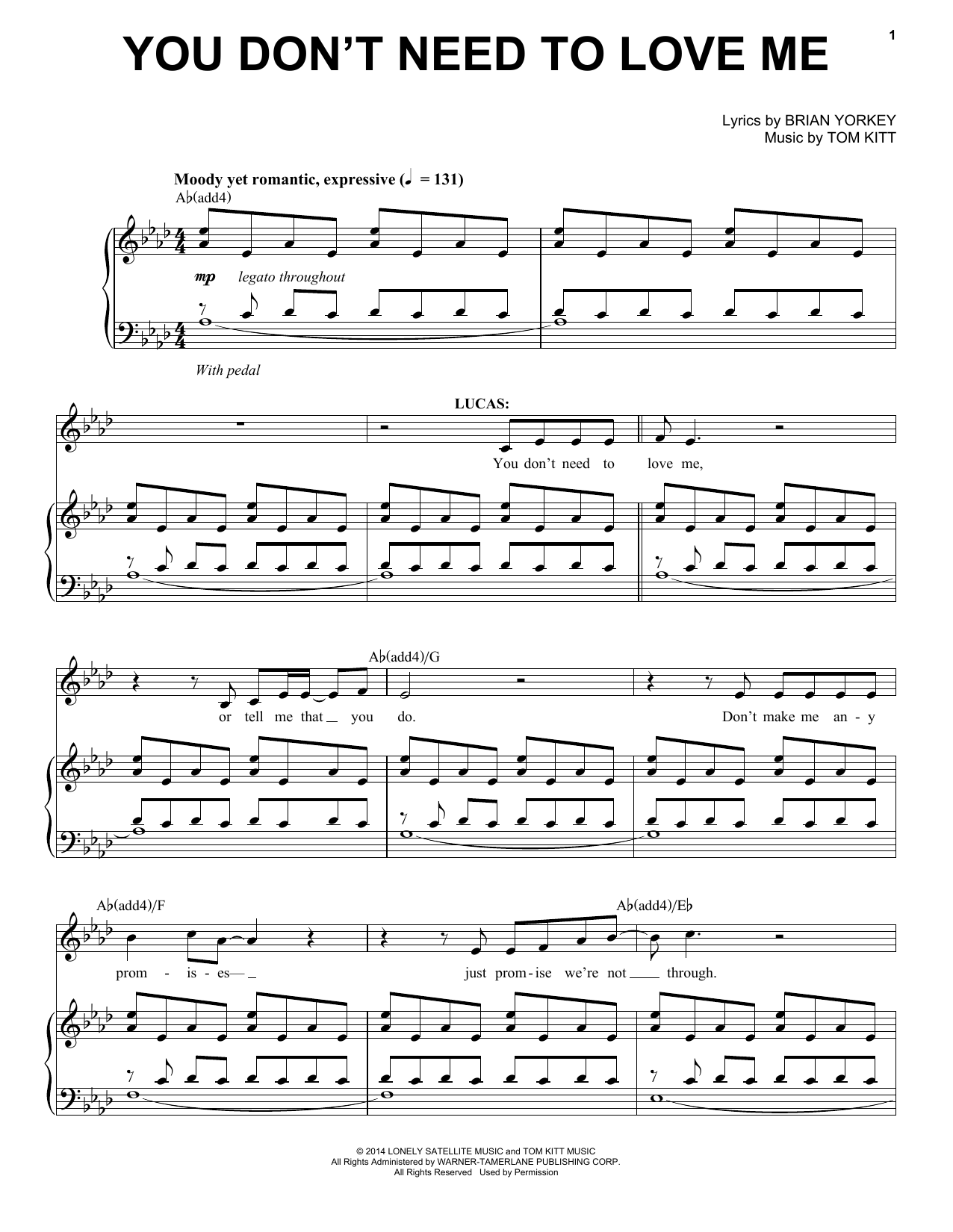 This composition is beautifuly arranged for Piano & Vocal includes 8 page(s). It is performed by Tom Kitt. The style of the score is 'Pop'. Catalog SKU number of the notation is 155187.