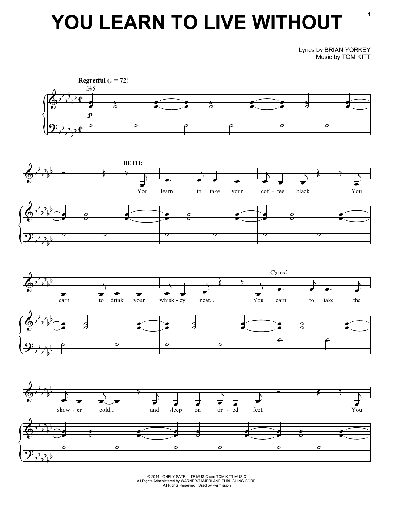 Download or print Idina Menzel You Learn To Live Without (from If/Then: A New Musical) sheet music, chords and digital score arranged for Piano & Vocal. This Pop score includes 10 page(s).