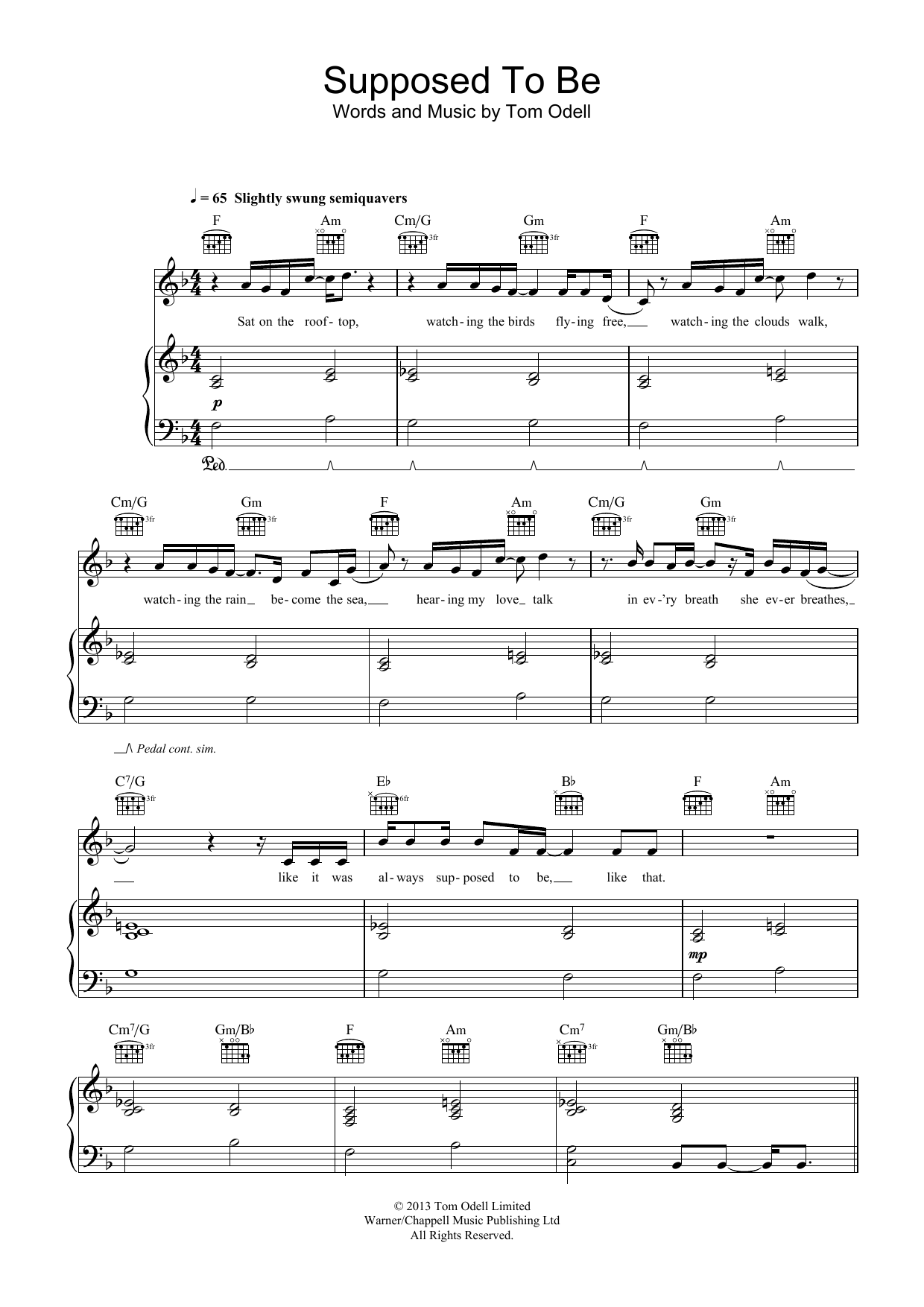 Download or print Tom Odell Supposed To Be sheet music, chords and digital score arranged for Piano, Vocal & Guitar Chords (Right-Hand Melody). This Pop score includes 3 page(s).