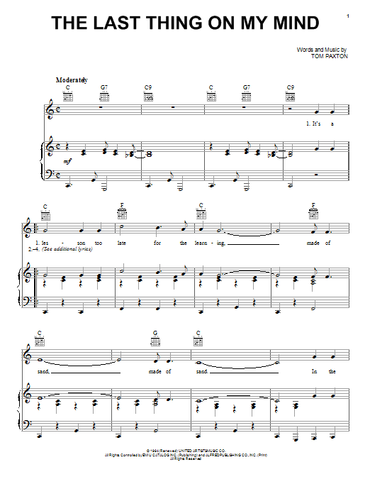 Quick facts The Last Thing On My Mind about digital sheet music
