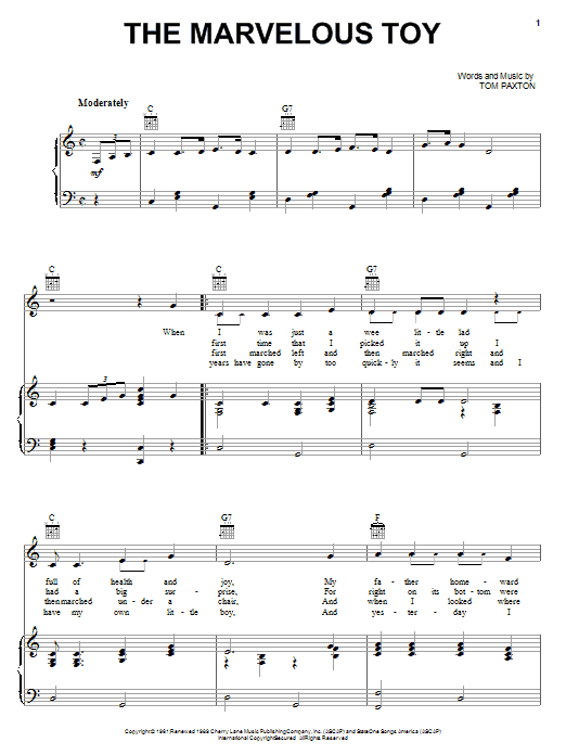 Download or print Tom Paxton The Marvelous Toy sheet music, chords and digital score arranged for Guitar Tab. This Folk score includes 2 page(s).