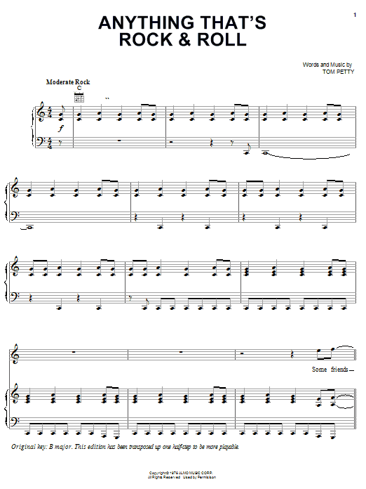 Download or print Tom Petty And The Heartbreakers Anything That's Rock & Roll sheet music, chords and digital score arranged for Piano, Vocal & Guitar Chords (Right-Hand Melody). This Rock score includes 5 page(s).