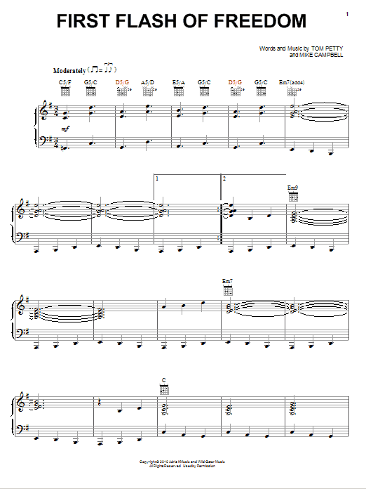 Download or print Tom Petty And The Heartbreakers First Flash Of Freedom sheet music, chords and digital score arranged for Piano, Vocal & Guitar Chords (Right-Hand Melody). This Pop score includes 8 page(s).