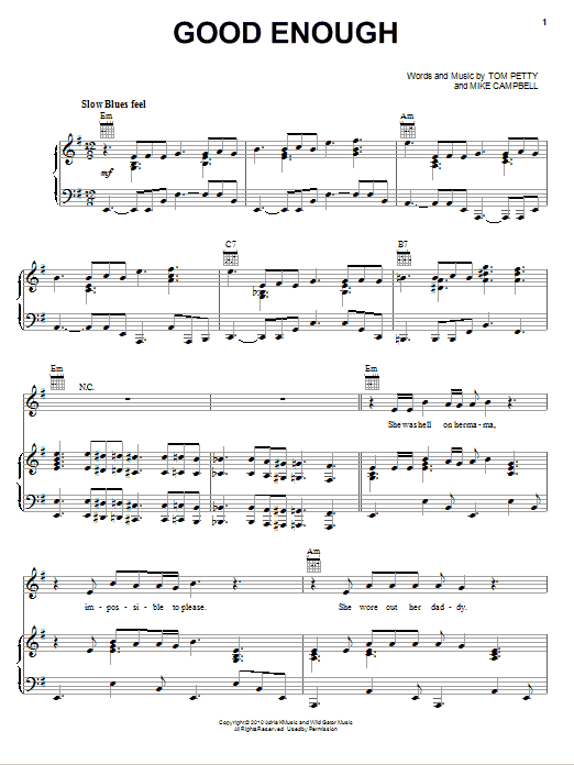Download or print Tom Petty And The Heartbreakers Good Enough sheet music, chords and digital score arranged for Piano, Vocal & Guitar Chords (Right-Hand Melody). This Pop score includes 6 page(s).
