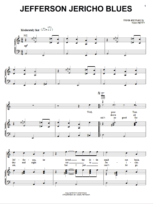 Download or print Tom Petty And The Heartbreakers Jefferson Jericho Blues sheet music, chords and digital score arranged for Piano, Vocal & Guitar Chords (Right-Hand Melody). This Pop score includes 5 page(s).