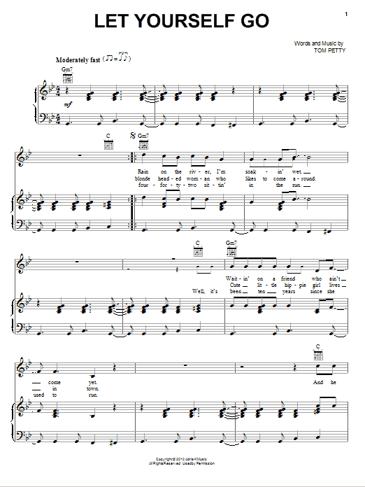 Download or print Tom Petty And The Heartbreakers Let Yourself Go sheet music, chords and digital score arranged for Piano, Vocal & Guitar Chords (Right-Hand Melody). This Pop score includes 4 page(s).