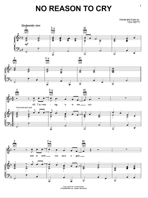Download or print Tom Petty And The Heartbreakers No Reason To Cry sheet music, chords and digital score arranged for Piano, Vocal & Guitar Chords (Right-Hand Melody). This Pop score includes 4 page(s).