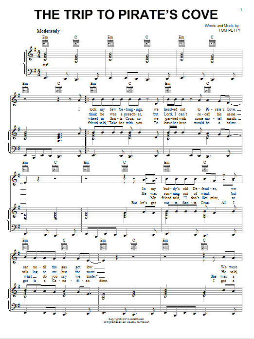 Download or print Tom Petty And The Heartbreakers The Trip To Pirate's Cove sheet music, chords and digital score arranged for Piano, Vocal & Guitar Chords (Right-Hand Melody). This Pop score includes 3 page(s).
