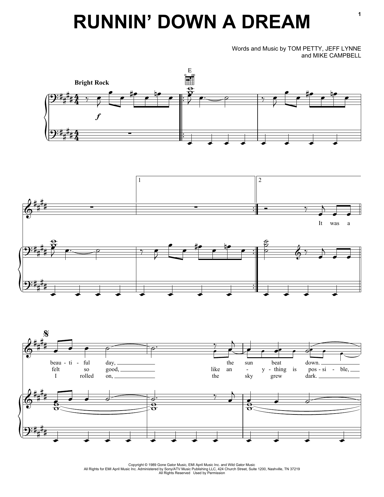 Download or print Tom Petty Runnin' Down A Dream sheet music, chords and digital score arranged for Easy Guitar Tab. This Pop score includes 7 page(s).