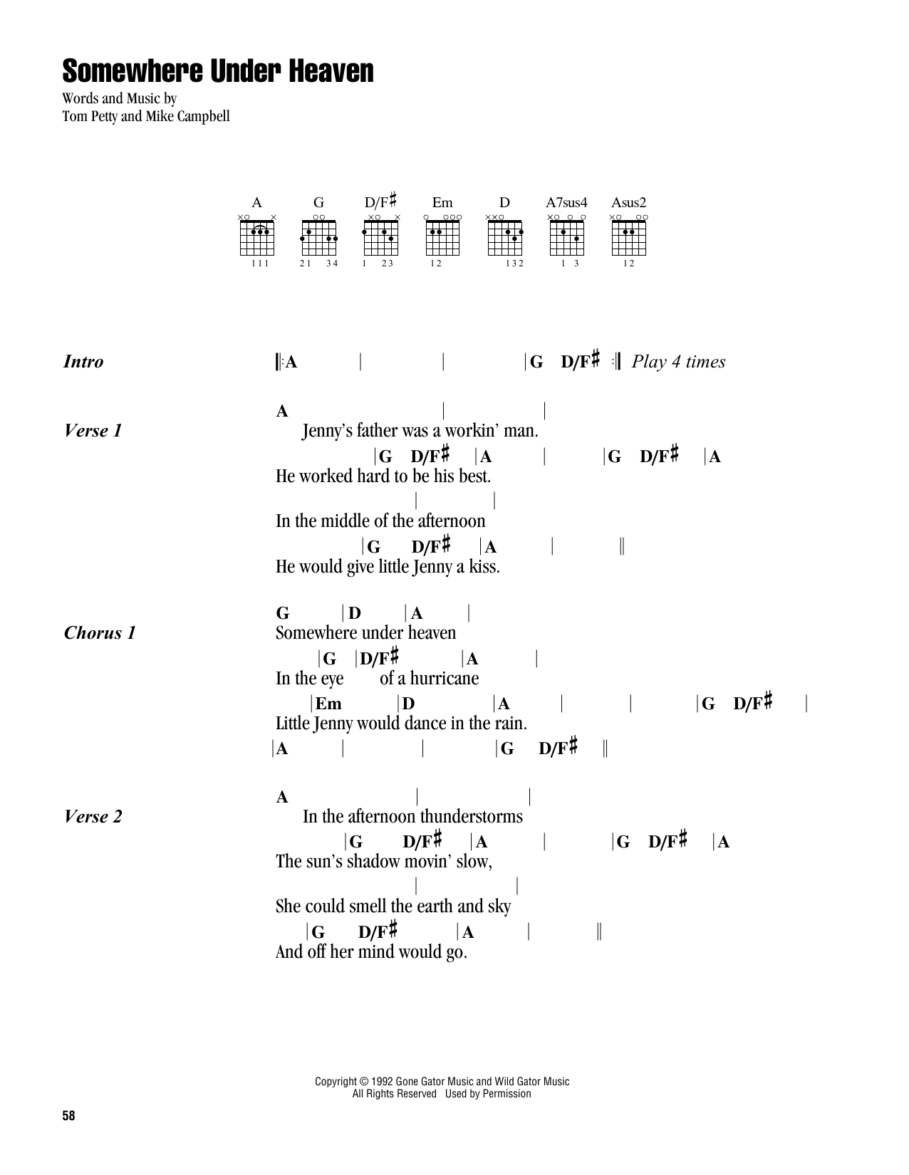 Download or print Tom Petty Somewhere Under Heaven sheet music, chords and digital score arranged for Guitar Chords/Lyrics. This Rock score includes 2 page(s).