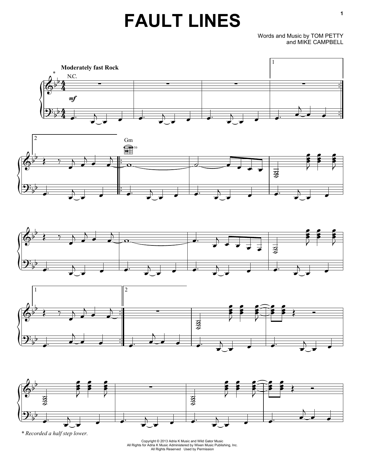 Download or print Tom Petty & the Heartbreakers Fault Lines sheet music, chords and digital score arranged for Piano, Vocal & Guitar Chords (Right-Hand Melody). This Pop score includes 6 page(s).