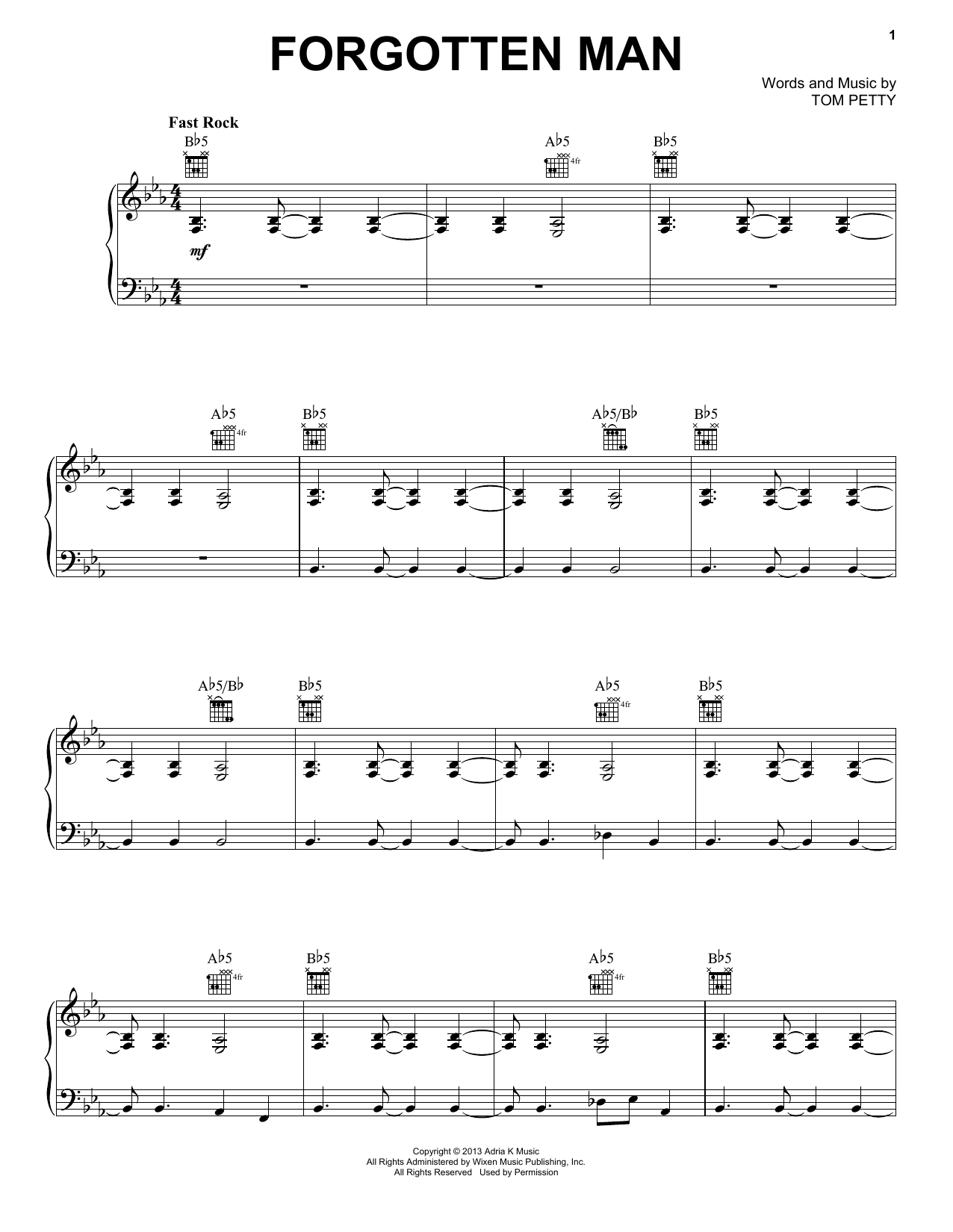 Download or print Tom Petty & the Heartbreakers Forgotten Man sheet music, chords and digital score arranged for Piano, Vocal & Guitar Chords (Right-Hand Melody). This Pop score includes 7 page(s).