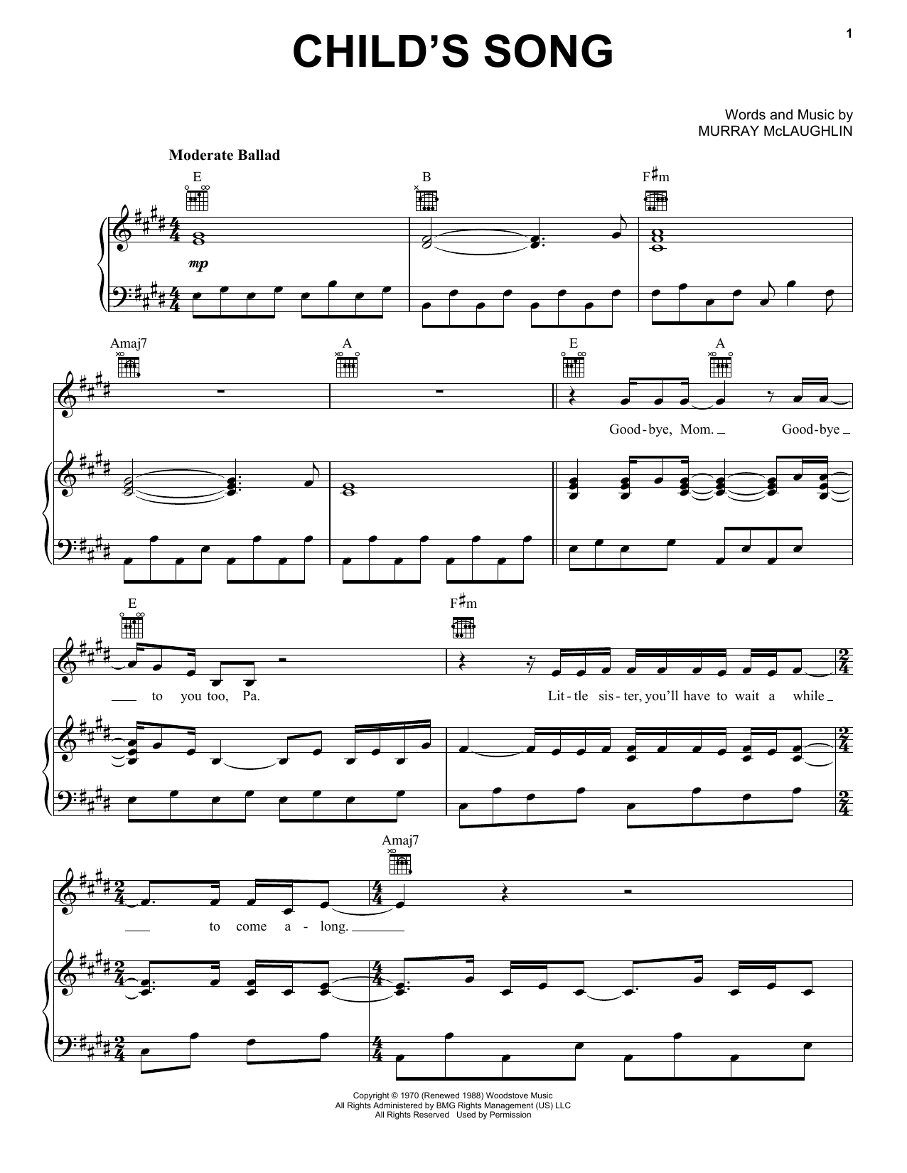 Download or print Tom Rush Child's Song sheet music, chords and digital score arranged for Piano, Vocal & Guitar Chords (Right-Hand Melody). This Pop score includes 6 page(s).