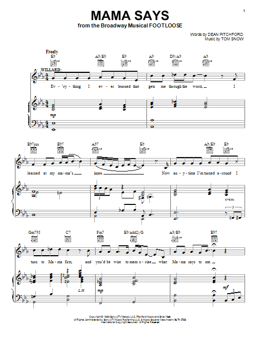 Download or print Dean Pitchford Mama Says sheet music, chords and digital score arranged for Easy Piano. This Musical/Show score includes 8 page(s).