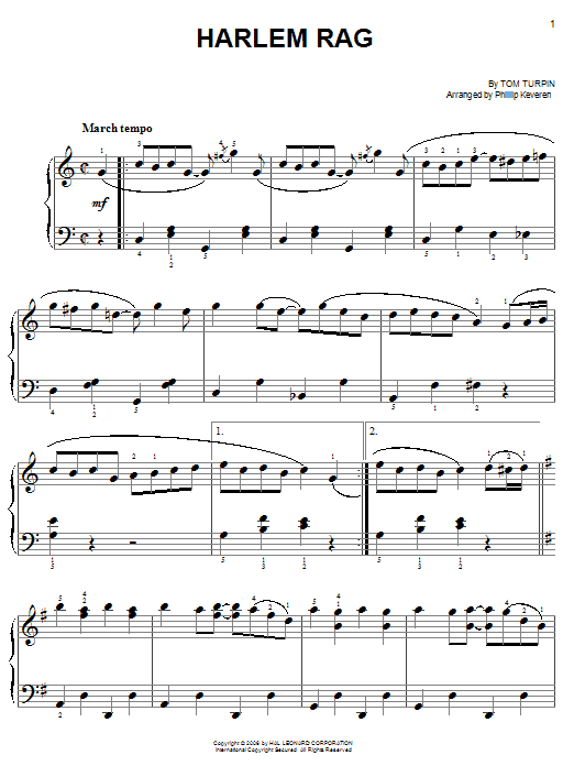Download or print Tom Turpin Harlem Rag (arr. Phillip Keveren) sheet music, chords and digital score arranged for Easy Piano. This Children score includes 4 page(s).