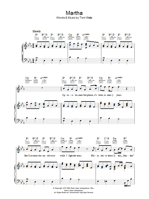 Download or print Tom Waits Martha sheet music, chords and digital score arranged for Guitar Chords/Lyrics. This Rock score includes 3 page(s).