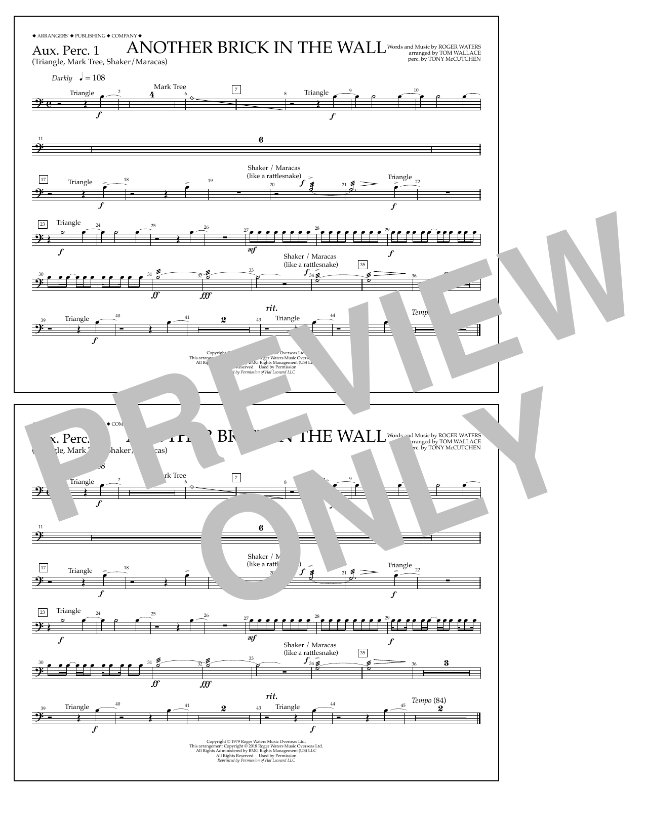 Download or print Tom Wallace Another Brick in the Wall - Aux. Perc. 1 sheet music, chords and digital score arranged for Marching Band. This Pop score includes 1 page(s).