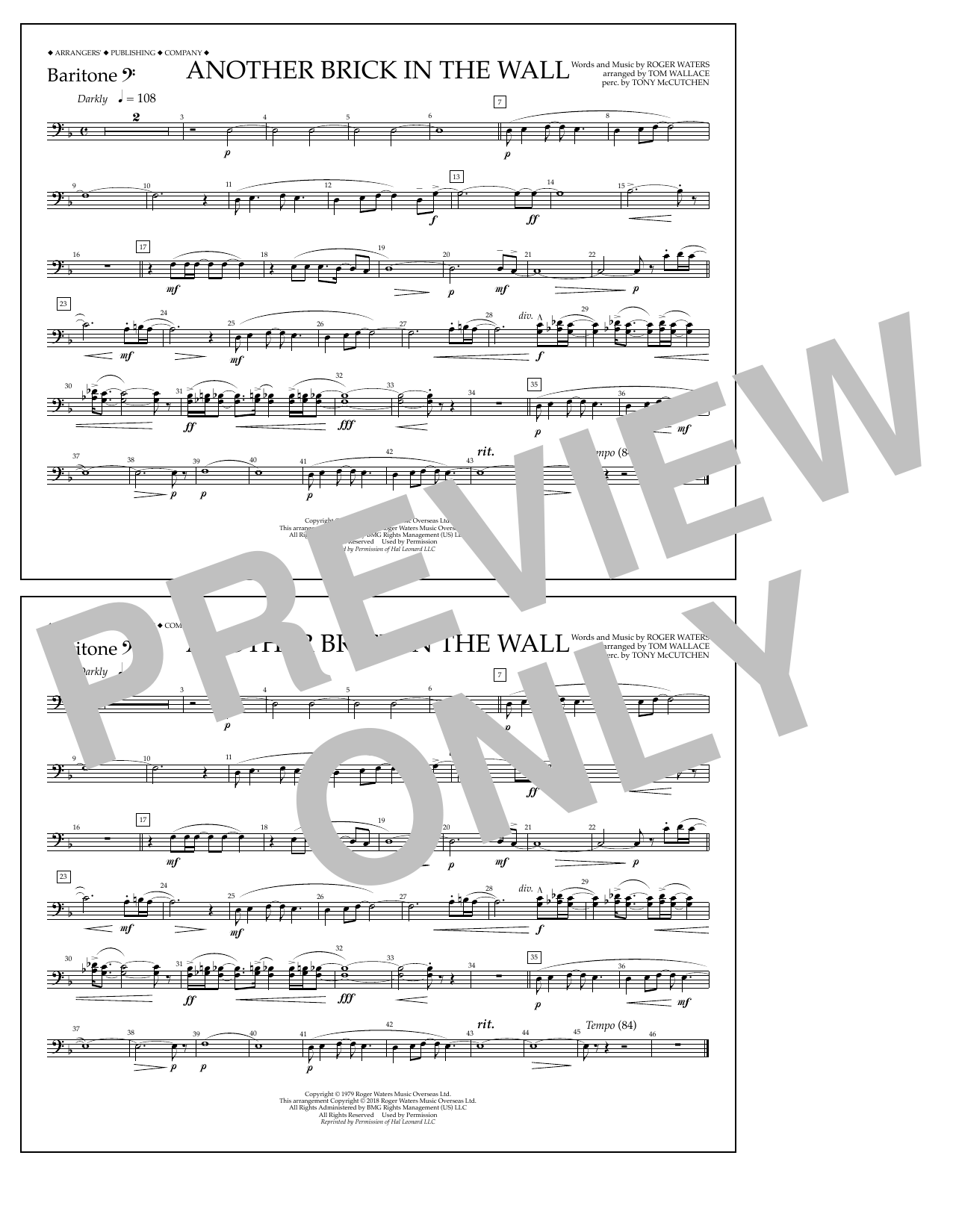 Download or print Tom Wallace Another Brick in the Wall - Baritone B.C. sheet music, chords and digital score arranged for Marching Band. This Pop score includes 1 page(s).