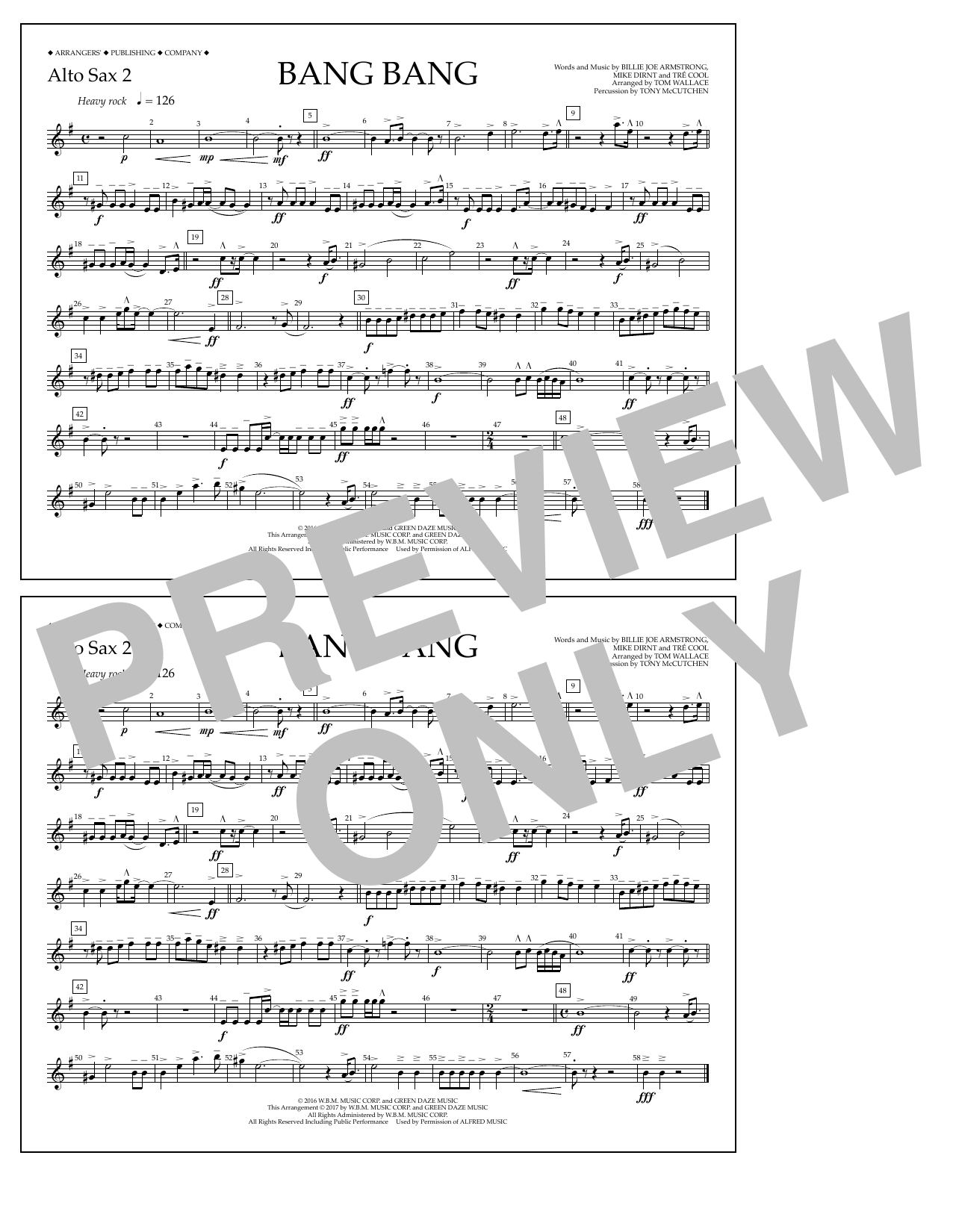 Download or print Tom Wallace Bang Bang - Alto Sax 2 sheet music, chords and digital score arranged for Marching Band. This Pop score includes 1 page(s).