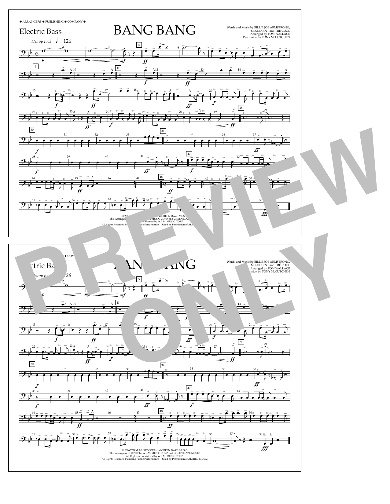 Download or print Tom Wallace Bang Bang - Electric Bass sheet music, chords and digital score arranged for Marching Band. This Pop score includes 1 page(s).