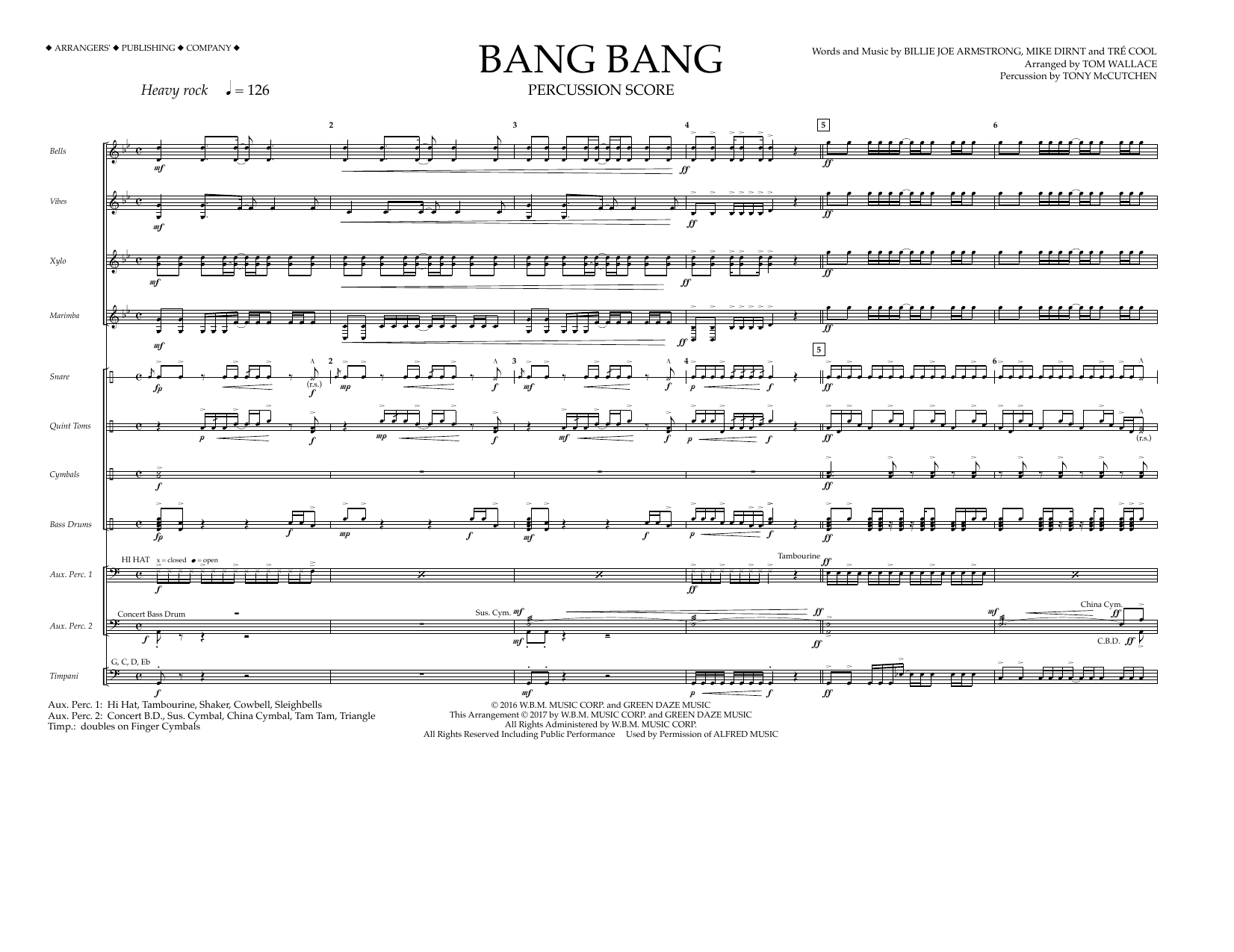 Download or print Tom Wallace Bang Bang - Percussion Score sheet music, chords and digital score arranged for Marching Band. This Pop score includes 10 page(s).