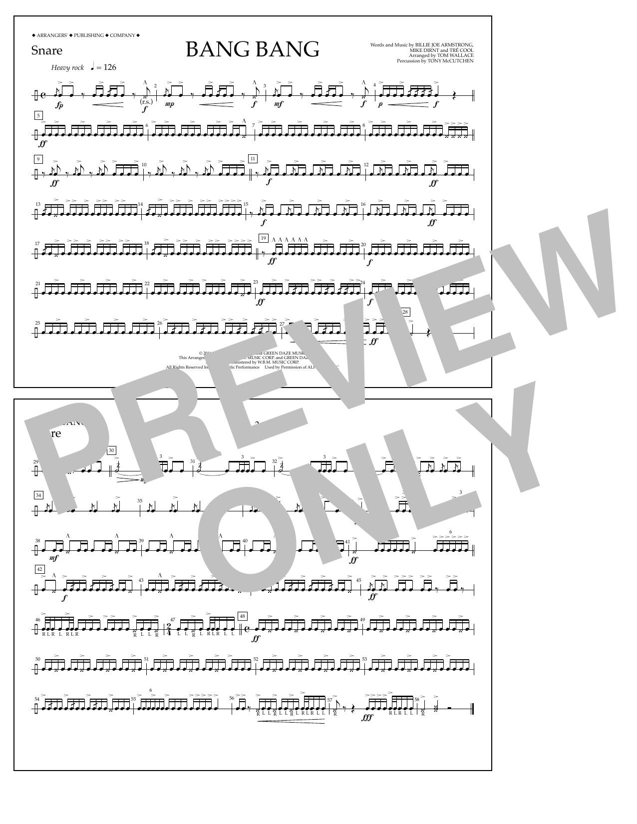 Download or print Tom Wallace Bang Bang - Snare sheet music, chords and digital score arranged for Marching Band. This Pop score includes 1 page(s).